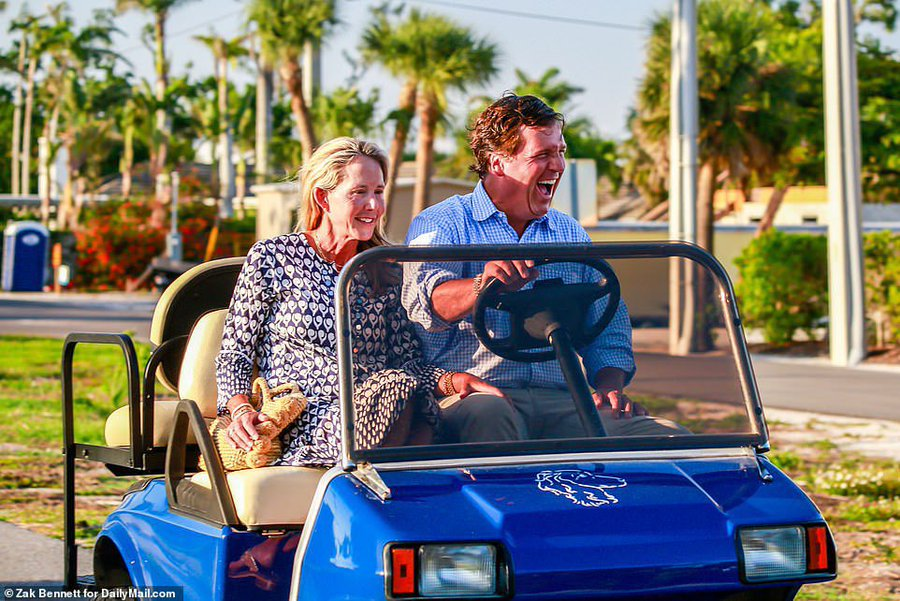 A few days post-Fox, Tucker was recently spotted by a Daily Wire affiliate in Florida where he often resides. He was looking happier than ever in his dope golf cart, tan and cruising with his wife back lit by sunsets and swaying palms. He has never looked better and no matter what is happening, we at Free Press Fail are glad to see it.