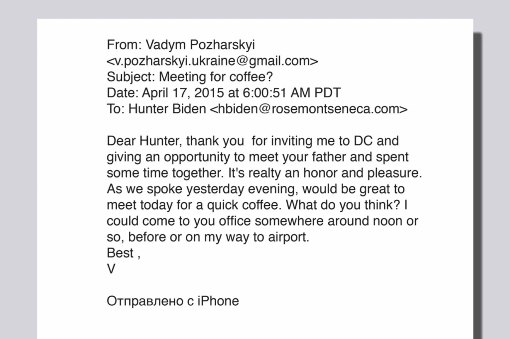 In an exclusive report, they released a smoking-gun email that reveals exactly how Hunter Biden introduced Ukrainian businessman to his dad – who was, of course, Vice President at the time. The meeting was less than a year before the former VP pressured government officials in Ukraine to fire a prosecutor who was investigating Burisma.
