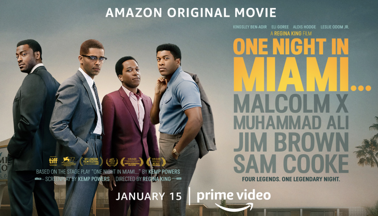 Based on the stage play of the same name with the screenplay adapted by the original playwright, Kemp Powers, One Night In Miami (“Miami”) is a unique historical fiction which asks the question “What would they have said to each other” of four prominent figures in American history who met one night in Miami, Florida on February 25, 1964. What Cassius Clay, Malcom X, Sam Cooke and Jim Brown talked about that strange night is unknown but what is known is the very next day Cassius Clay became a member of the Nation of Islam and changed his name to Mohammed Ali.