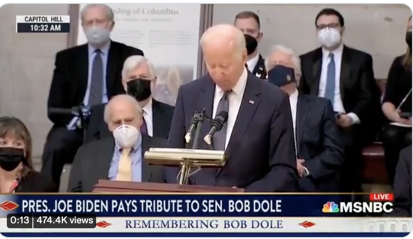 Yesterday, Joe Biden spoke at a ceremony honoring the life of Senator Bob Dole.