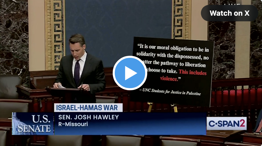 Democrat Senator Chris Van Hollen just BLOCKED Senator @HawleyMO's resolution condemning the violent, antisemitic rhetoric on America's college campuses pic.twitter.com/do35GyhcYd